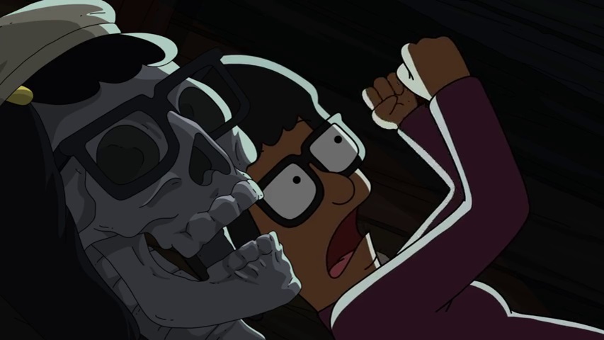 Bob's Burgers has consistently had a Halloween show every year since series 3. In a show where the characters never age, I suppose that means they've celebrated the same exact Halloween many different times. That would explain why Louise gets scared in the Haunted House at Wonder Wharf in "Nightmare on Ocean Avenue Street" after complaining that haunted houses aren't scary in "The Hauntening". In any case, you can always count on this show for a decent holiday episode, making it a mainstay of my Hallo-week since I started watching the show in 2017. Unlike some other shows, which take the opportunity to dispense with their mainline canon and remake old monster movies or something, Bob's Burgers fits its Halloween specials in with its mainline canon. However, unlike during the normal shows, things that happen on Halloween, Thanksgiving, Christmas, or Valentine's never recur, since technically the Belchers keep doing the same year over and over again, therefore "Full Bars" occurs in the same space at the same time as "Pig Trouble in Little Tina", which occurs simultaneously with "Fort Night", which occurs simultaneously with "Heartbreak Hotel-oween". You get it.